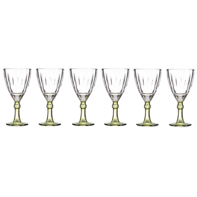 - Accent colorat: Fiecare pahar este decorat cu un picior profilat din sticlă colorată - alege dintre trei variante de culoare: verde, roz și albastru.