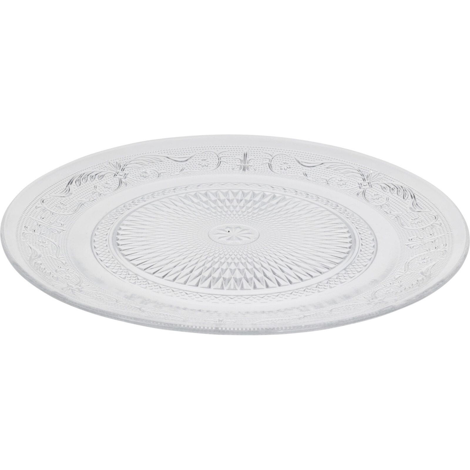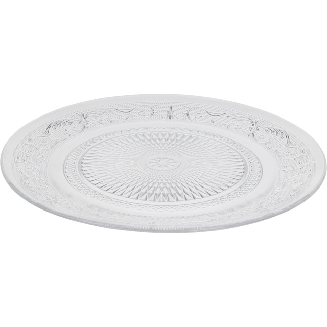 Farfurie elegantă din sticlă de 25 cm pentru servirea preparatelor - un model subtil, embossat, care va adăuga clasă fiecărei mese