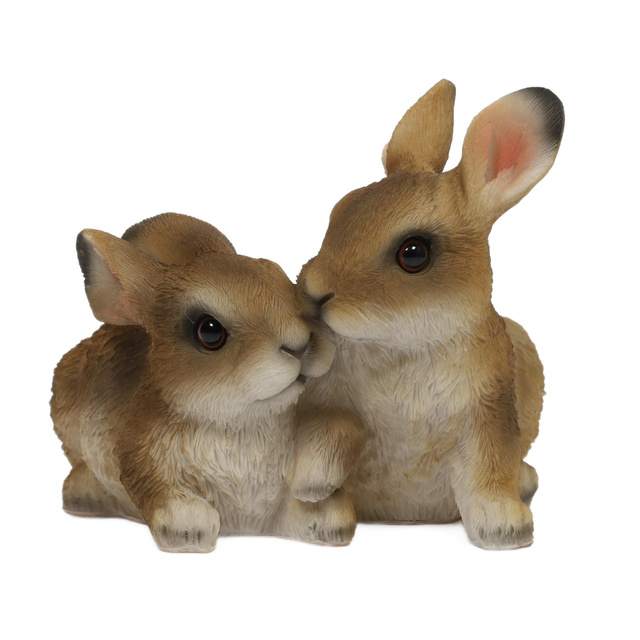 - Design adorabil: Figurină care reprezintă doi iepurași în culori naturale, care vor adăuga farmec oricărei grădini sau terase. Detaliile lor realiste fac din ei un element decorativ perfect.