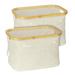 - Materiale de înaltă calitate: Coșurile sunt fabricate din 80% poliester și 20% bumbac, ceea ce le asigură durabilitatea și ușurința în menținerea curățeniei. În plus, finisajul din bambus le conferă un aspect elegant.