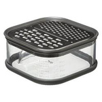 Într-un astfel de dispozitiv, răzătoarea este atașată în siguranță la un recipient, astfel încât nu se va mișca în timpul raderii produselor. Nu există mizerie, deoarece fulgii rași merg direct în recipient. Aceasta este o soluție foarte convenabilă, deoarece odată ce răzătoarea este îndepărtată, avem un recipient la îndemână pentru produsul pregătit. Recipientul include de obicei mai multe discuri cu găuri de diferite dimensiuni și un mâner. În această categorie, vei găsi produse multifuncționale și mici răzătoare pentru brânză cu recipiente, răzătoare pentru usturoi sau ghimbir cu o tavă mică sau răzătoare pentru nuci.