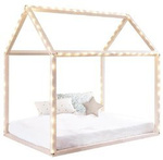 Căsuțele din lemn își găsesc și alte utilizări – un cadru din lemn în formă de căsuță poate servi nu doar ca zonă de joacă, ci și ca suport pentru pat. Adaugă o acoperire moale din material textil sau un baldachin pentru a crea puțină intimitate, decorează interiorul cu perne pufoase și jucării din pluș, și e gata! Această opțiune are un beneficiu suplimentar – este accesibilă și ușor de montat, iar spațiul poate avea mai multe funcții.