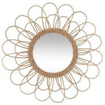 O oglindă într-un cadru țesut, din răchită cu o formă interesantă pentru camera de zi sau dormitor