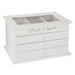 - Cutii de bijuterii cu compartimente, sertare și oglinzi,