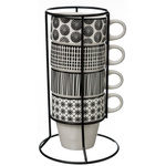 Set 4 cesti de portelan pe suport